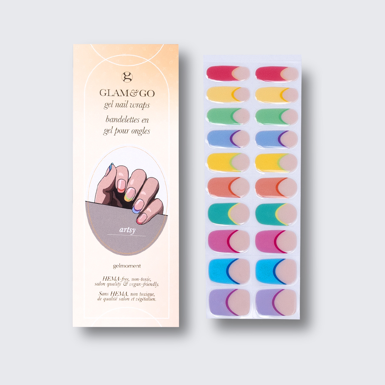 Plus, not only do GLAM & GO gel nail wraps provide the same glossy finish you know and love from our regular gel polish, but they are also HEMA FREE and have a wear time of up to 14+ days.