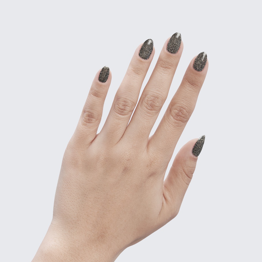 Black and silver shimmer in this discreet, translucent polish.